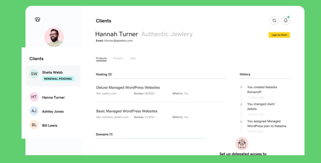 No more juggling multiple client passwords. From one dashboard, manage all your clients’ sites, products and purchases.